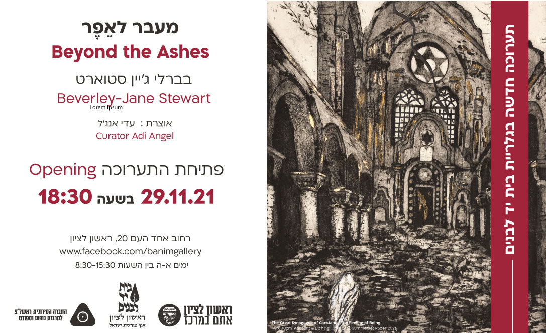 בברלי גיין סטוארט- אמנית בריטית יהודייה, אשר חיה ומתגוררת בלונדון. מתארת בשיחותינו אודות התערוכה מתארת את הקושי שהתעורר סביב השמירה על הקהילה היהודית בתקופת הסגרים של הקורונה. קהילה שרגילה להתאגד ולהיפגש סביב בית הכנסת, לא יכלה לקיים זאת ונאלצה כמו כולנו להסתגר בבית. הדבר הוביל אותה לחשוב על כל אותם קהילות יהודיות ברחבי אירופה שבית הכנסת שלהם נהרסו, הושמדו והוכחדו יחד עם תושביהן. בתערוכה זו מוצגים הדפסים של בתי כנסת ישנים ברחבי אירופה אשר היו פעם לפאר והדר של הקהילות היהודיות שחיו שם ונכחדו במלחמת העולם השניה.