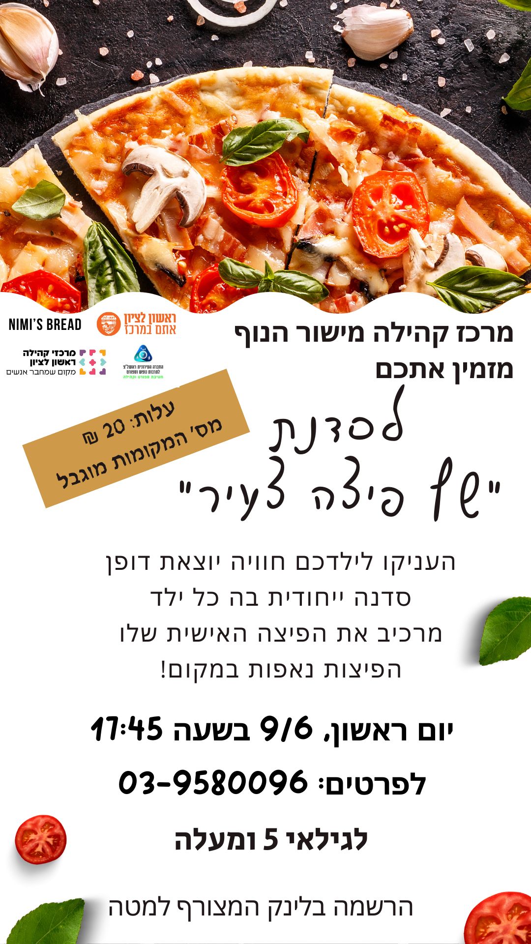 סדנה ייחודית בה כל ילד מרכיב את הפיצה האישית שלו . הפיצות נאפות במקום.