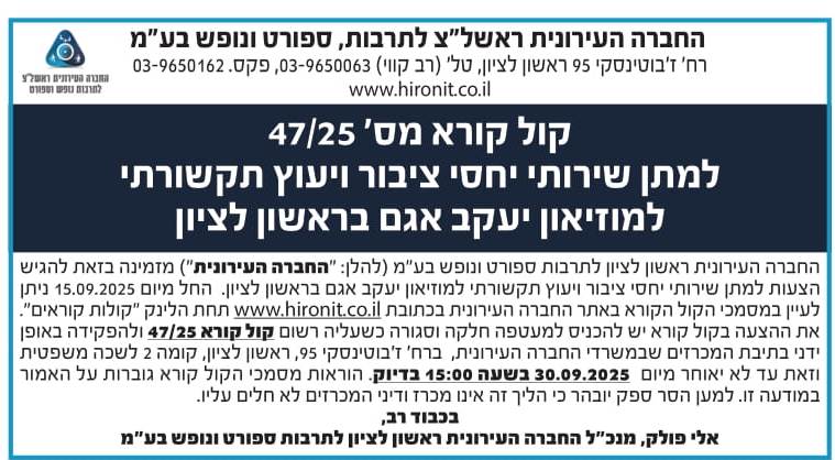 קול קורא 47/25 למתן שירותי יחסי ציבור ויעוץ תקשורתי למוזיאון אגם