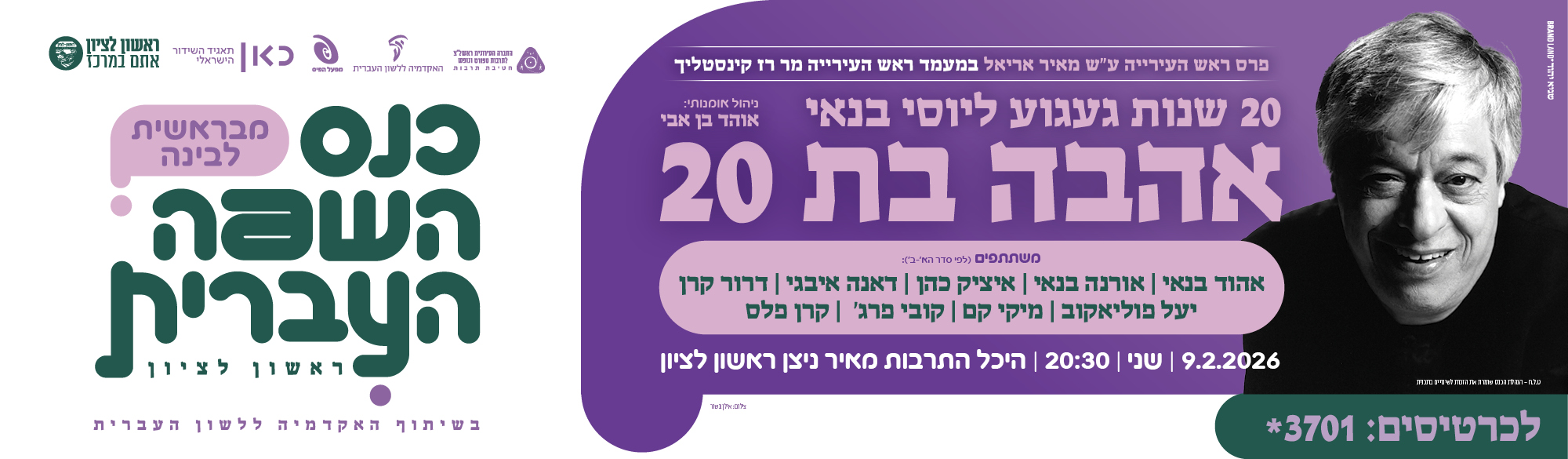 "אהבה בת 20" היא לא רק ערב לזכרו. זו חגיגה של שפה וזהות, של געגוע שממשיך לפעום ושל יצירה שמסרבת להתיישן. הופעה חגיגית, עוצמתית ומלאת לב שתציין את פתיחתו של הכנס.