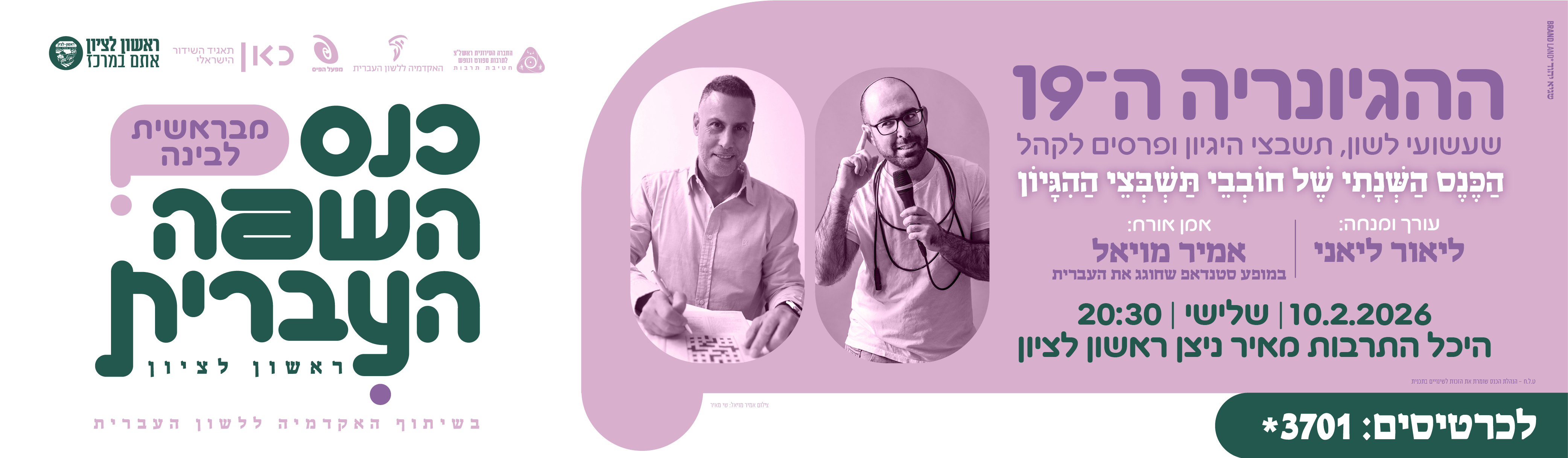 10.2.26, יום ג' בשעה 20:30 באולם מרכזי