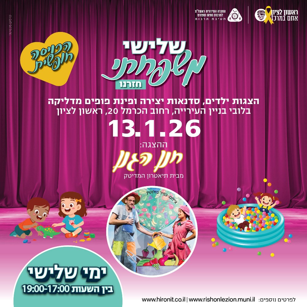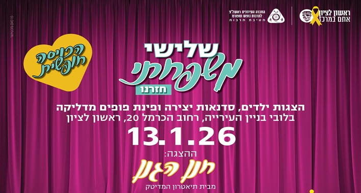 חטיבת התרבות בחברה העירונית של עיריית ראשון לציון מציגה: "שלישי משפחתי" חוזר ובגדול!