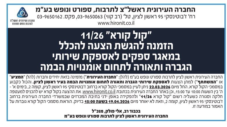 החברה העירונית ראשון לציון, תרבות, ספורט, נופש - עמוד הבית