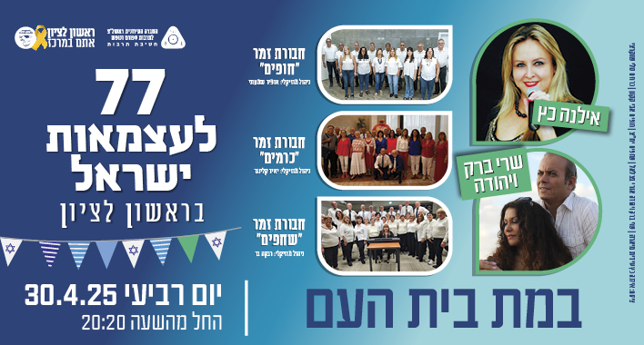 שרים בכיף עם הזמרת אילנה כץ ונגנים שירים לכבוד יום העצמאות ה-77 למדינת ישראל בשילוב מצגת מרהיבה